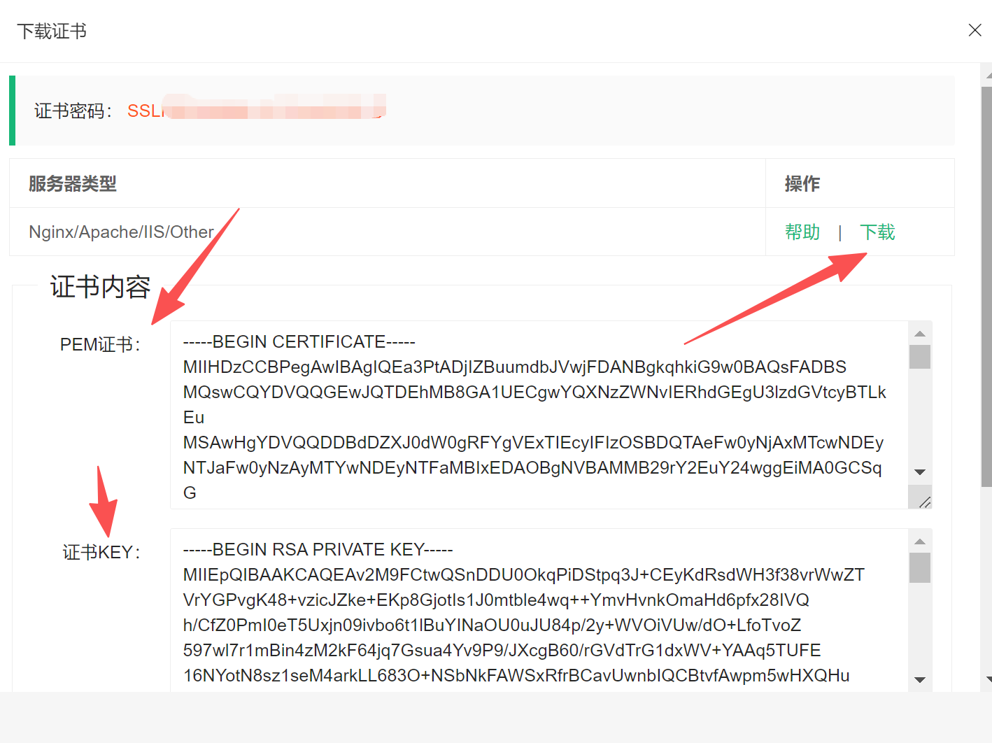 显示证书,复制或者下载自己需要的信息